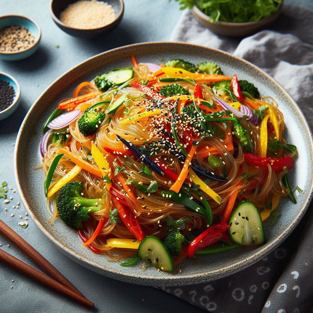 Japchae is a savory and slightly sweet dish made with stir-fried glass noodles, vegetables, and often beef or pork. It's a versatile dish that can be served as a side or a main course and is a favorite at Korean celebrations and parties.